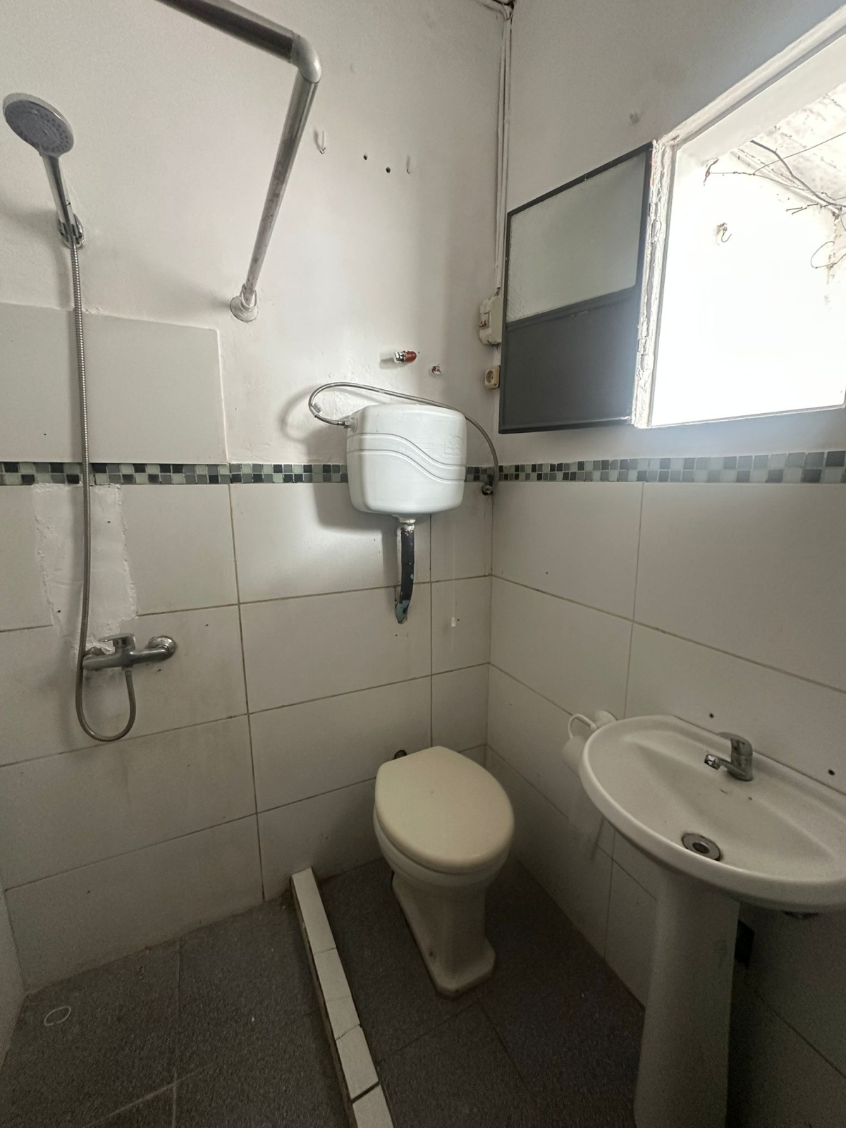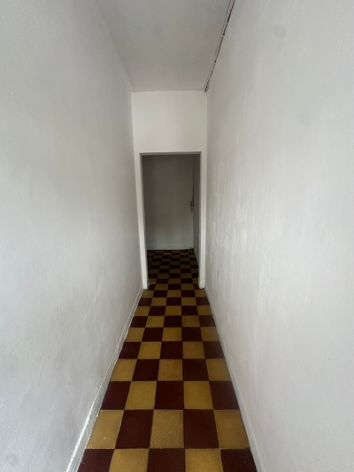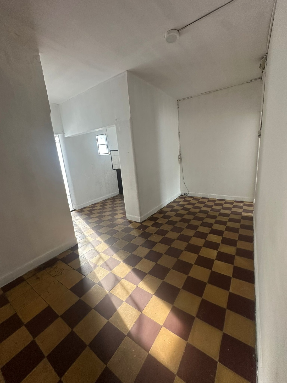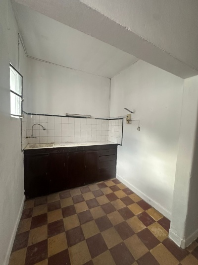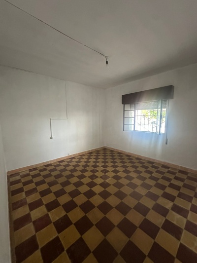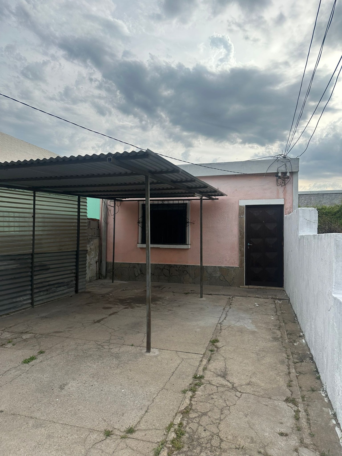 Entrada para vehículo techada al frente, living, cocina con bajo mesada, dormitorio delantero con ventana, baño, patio chico y segundo dormitorio lateral con ventana.
